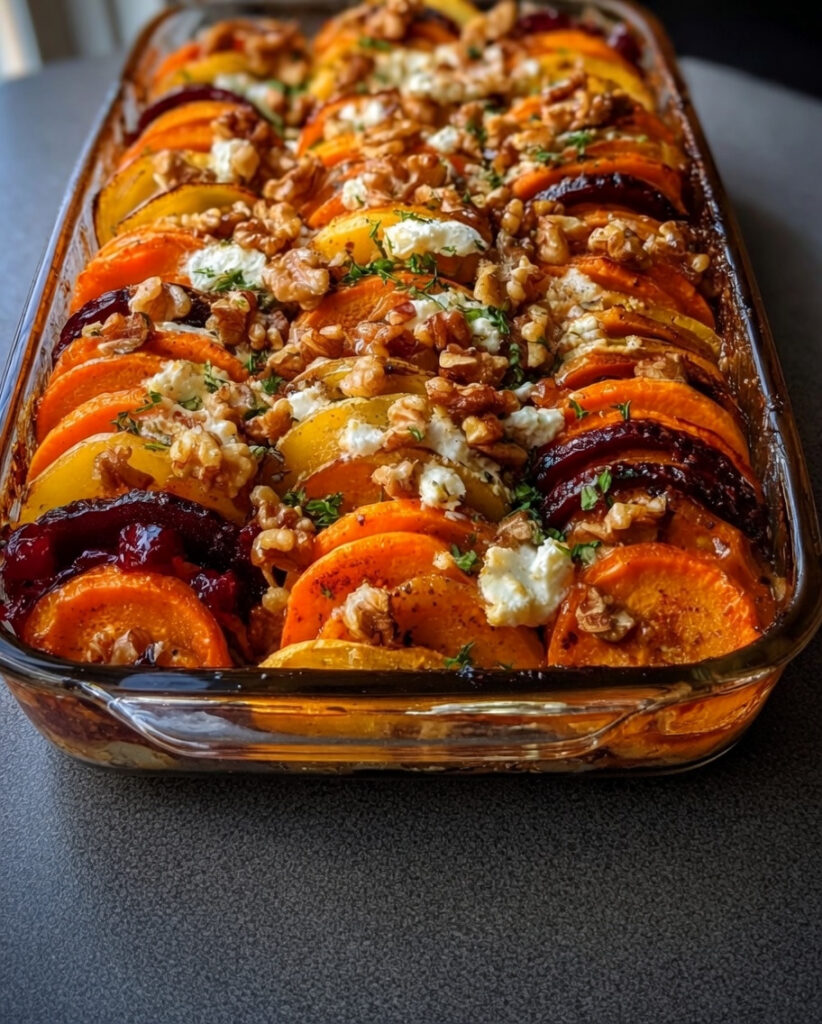 with Feta, Walnuts & Cranberry-Honey Glaze This Layered Sweet Potato, Butternut Squash & Carrot Bake is the kind of dish that turns simple vegetables into something truly special. With tender, …