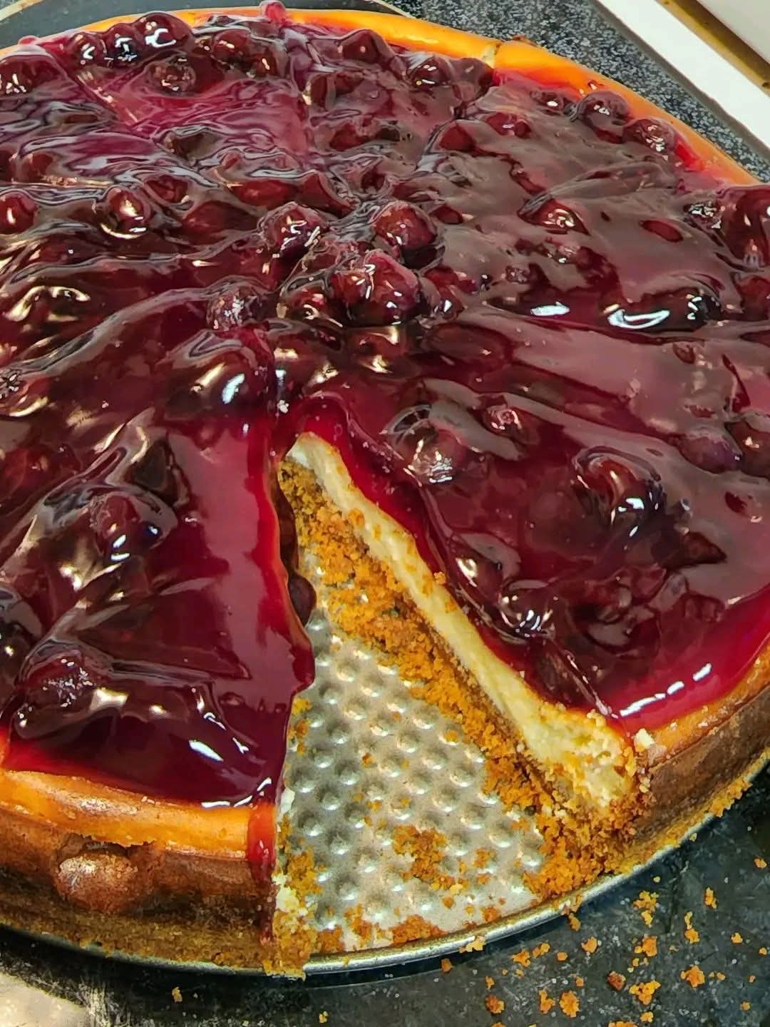Creamy, smooth cheesecake with a buttery graham cracker crust and bursts of juicy blueberries in every bite. A classic dessert that’s rich, fresh, and irresistible.