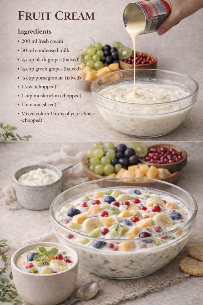 Fruit Cream is one of the most loved chilled desserts because it combines the richness of fresh cream with the natural sweetness and vibrant colors of seasonal fruits. It is …