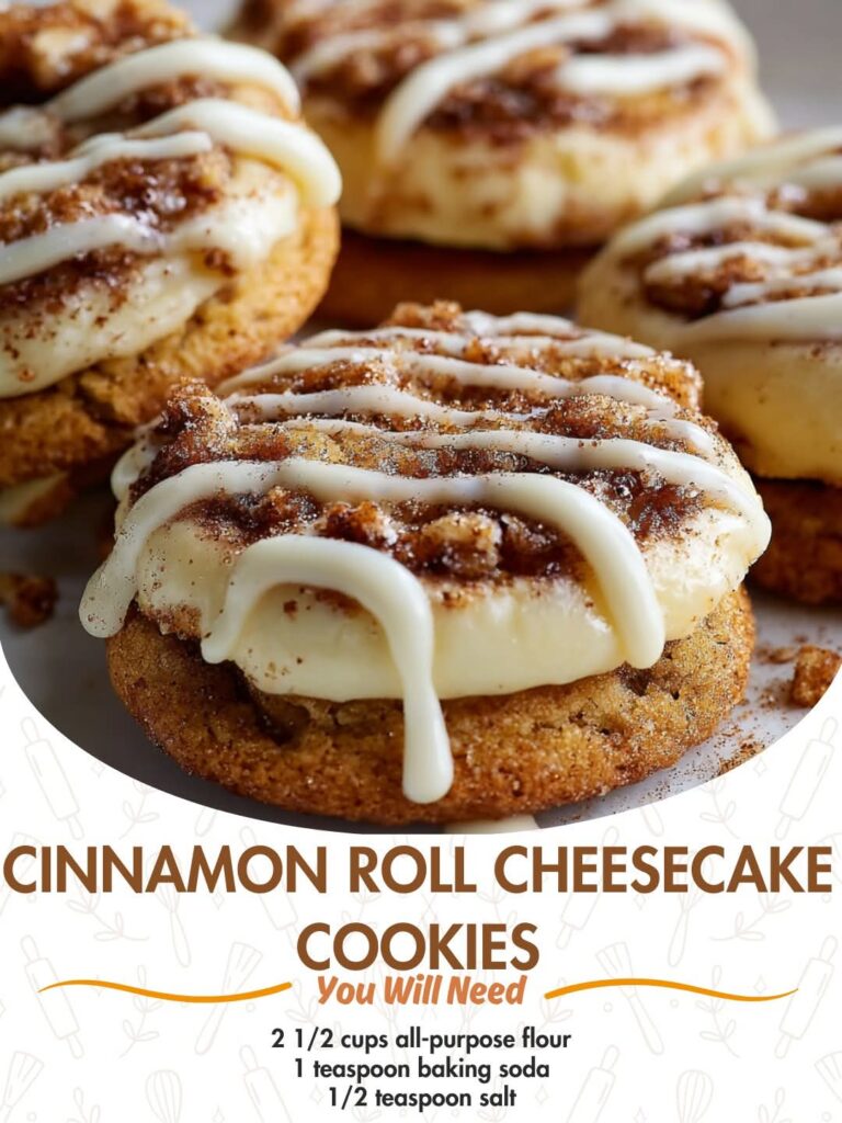 Soft cinnamon roll–style cookies with a creamy cheesecake center and a sweet cinnamon sugar swirl. These cookies are rich, gooey, and perfect for dessert tables, holidays, or cozy coffee moments. …