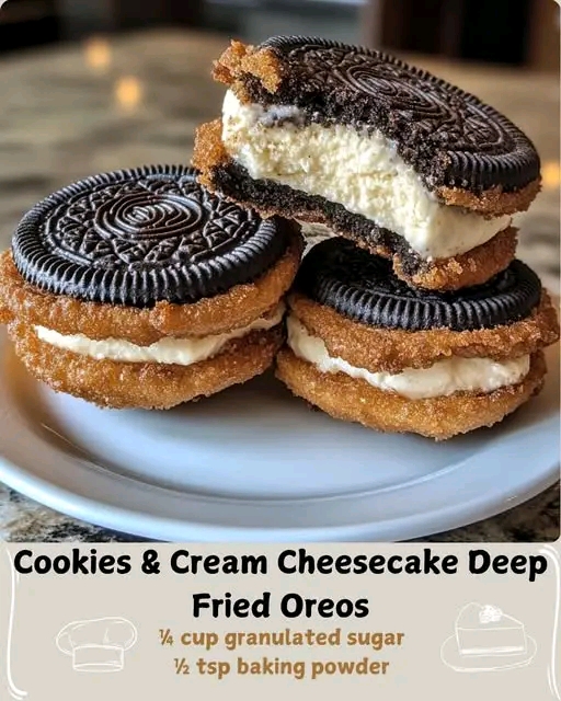 Cookies & Cream Cheesecake Deep Fried Oreos (Crispy, Creamy & Irresistible) Oreos are already iconic, but when you stuff them with cheesecake filling, dip them in batter, and fry them …