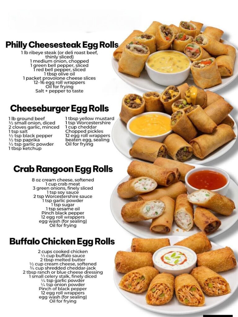 Crispy stuffed egg rolls made four irresistible ways: Philly Cheesesteak, Cheeseburger, Buffalo Chicken, and Crab Rangoon. These homemade egg rolls are crunchy on the outside, cheesy and flavorful on the …