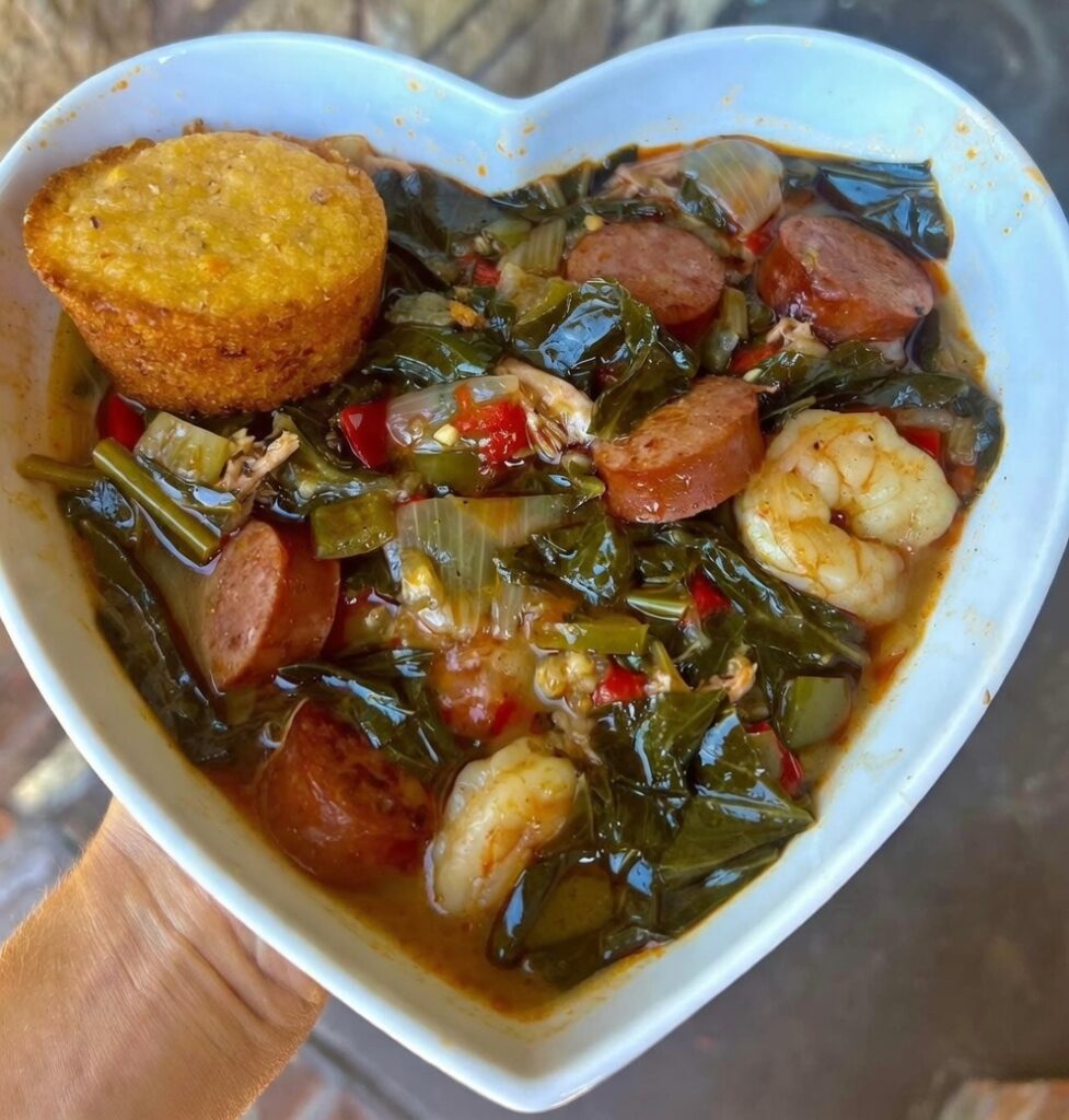 Rich, smoky, and packed with bold Southern flavor — this gumbo greens recipe combines tender collards, deep dark roux, smoked turkey, beef sausage, and juicy shrimp for the ultimate comfort …