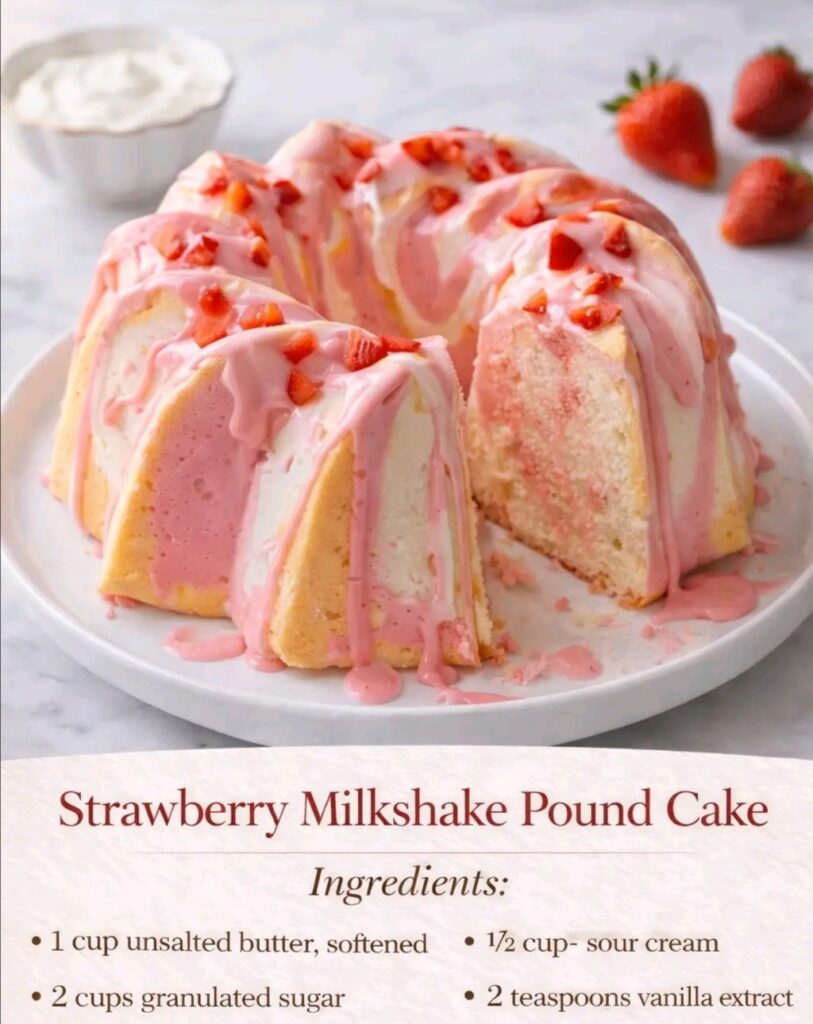 Strawberry Milkshake Pound Cake Introduction This Strawberry Milkshake Pound Cake is a fun twist on the classic pound cake, blending creamy strawberry milk with rich butter and sugar for a …