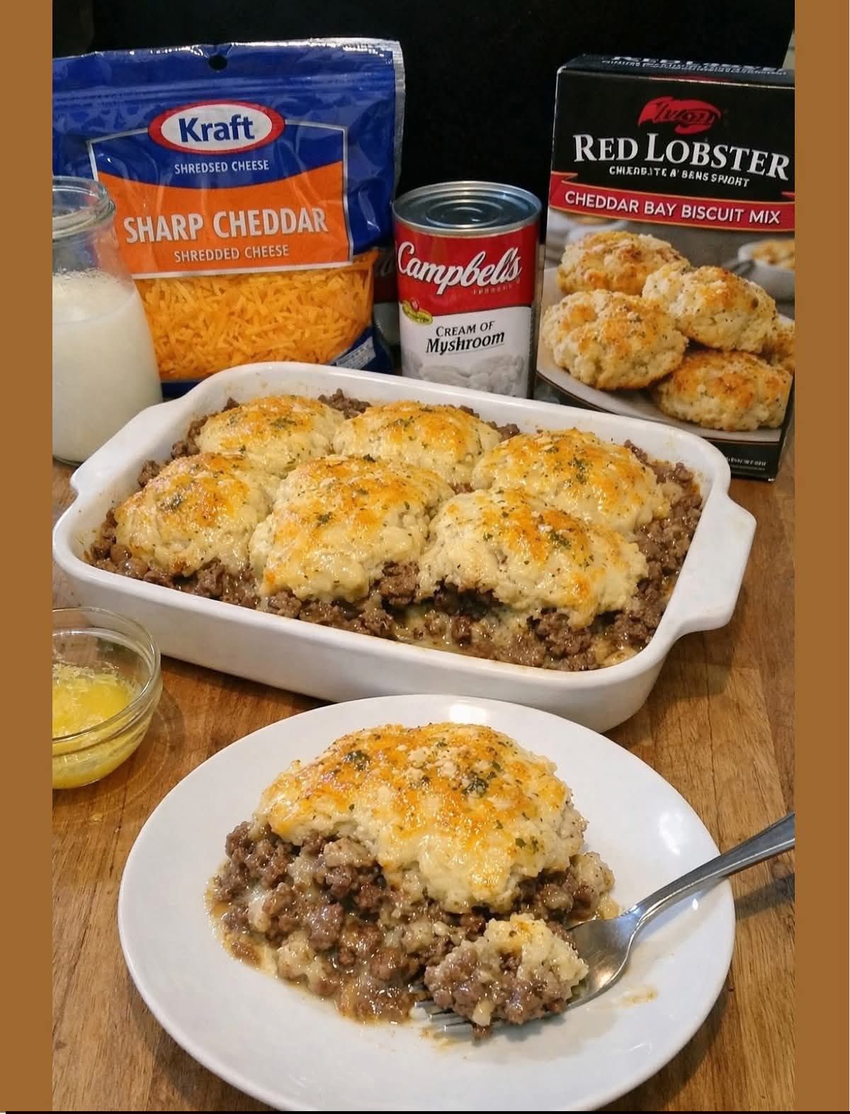 Some recipes instantly feel like home, and Cheddar Bay Beef Cobbler is one of them. It is hearty, rich, and deeply comforting, combining seasoned ground beef in a creamy sauce with fluffy, cheesy biscuits baked right on top. Inspired by the irresistible flavors of Cheddar Bay biscuits, this dish transforms simple pantry ingredients into a warm, satisfying meal that feels both nostalgic and indulgent.