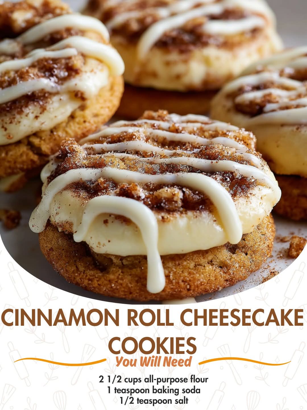 Soft cinnamon roll–style cookies with a creamy cheesecake center and a sweet cinnamon sugar swirl. These cookies are rich, gooey, and perfect for dessert tables, holidays, or cozy coffee moments.