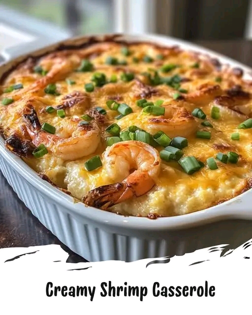 Creamy Shrimp and Grits Casserole with Cheddar Crust