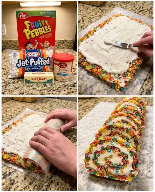 This Fruity Pebbles Marshmallow Treat Roll is colorful, chewy, and sweet — a dessert that brings instant joy. With its pinwheel slices and candy‑like look, it’s perfect for parties, holidays, or anytime you want a playful treat.