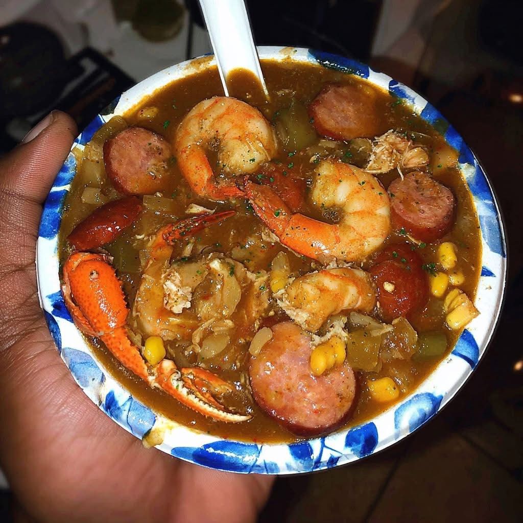 Loaded Seafood Gumbo is thick, rich, and deeply savory without being heavy. The broth is velvety from the roux, the vegetables are soft and integrated, and the proteins are tender and well-seasoned. Sweet corn adds a subtle pop of sweetness and texture, balancing the spice and smokiness. Each bowl offers layers of flavor that develop as you eat, making gumbo a dish that feels comforting yet complex.