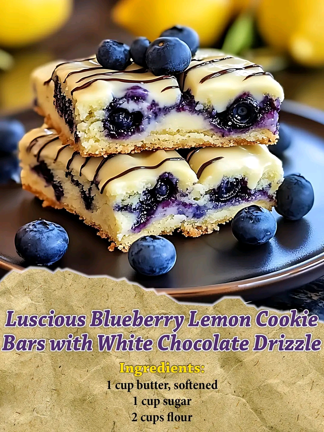 Few desserts strike the perfect balance between tangy, sweet, and indulgent quite like these Blueberry Lemon Cookie Bars. With a buttery base, bursts of juicy blueberries, bright lemon zest, and a finishing drizzle of creamy white chocolate, this recipe is a show‑stopper for spring gatherings, summer picnics, or cozy afternoons at home.