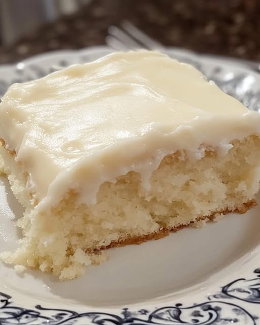 We spread the icing evenly over the warm cake, allowing it to melt slightly into the surface. As the cake cools completely, the frosting sets into a creamy, luscious topping that slices cleanly while remaining soft.