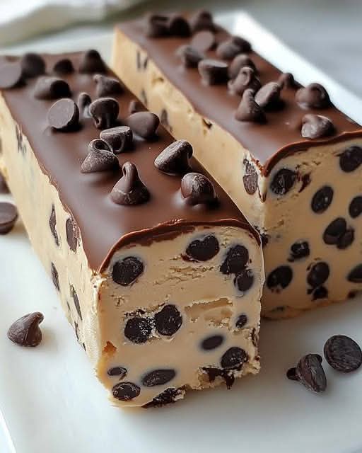 Line a loaf pan with parchment paper. Press the cookie dough mixture evenly into the pan and smooth the top. Refrigerate for 20 minutes.