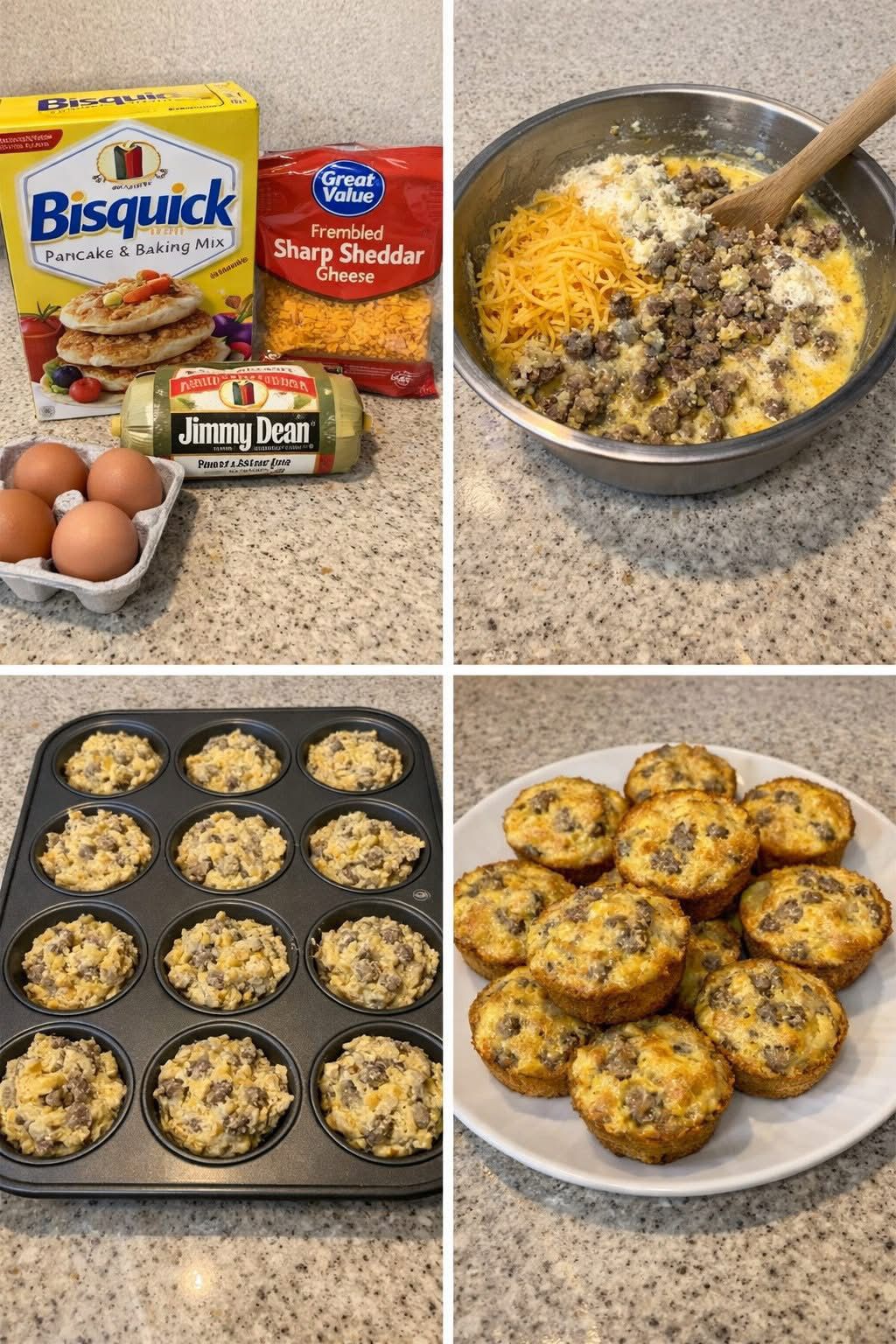These muffins are soft yet sturdy, packed with seasoned sausage, rich eggs, and melted cheddar cheese, all held together by a simple Bisquick batter. They bake up golden, tender, and full of flavor, making them perfect for busy mornings, weekend brunches, meal prep, or even a quick lunch on the go.