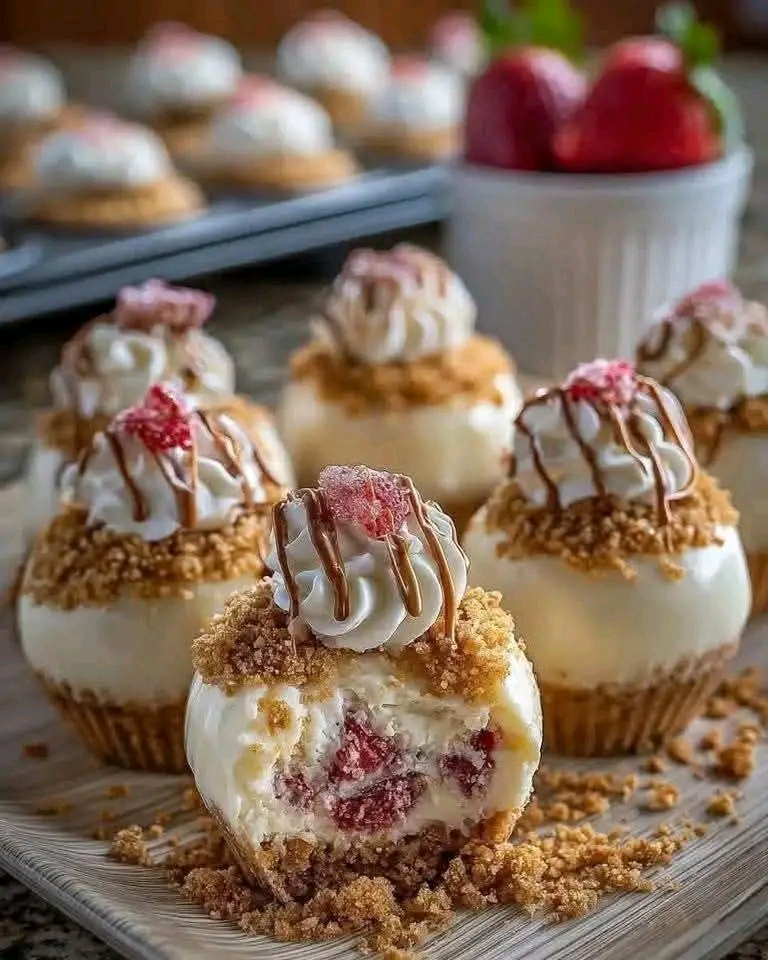 These Strawberry Crunch Cheesecake Bites are the perfect mini dessert — creamy cheesecake filling baked into bite‑sized portions, topped with a sweet strawberry crunch, and finished with optional garnishes like whipped cream or white chocolate drizzle. They’re elegant enough for parties yet simple enough for everyday indulgence.