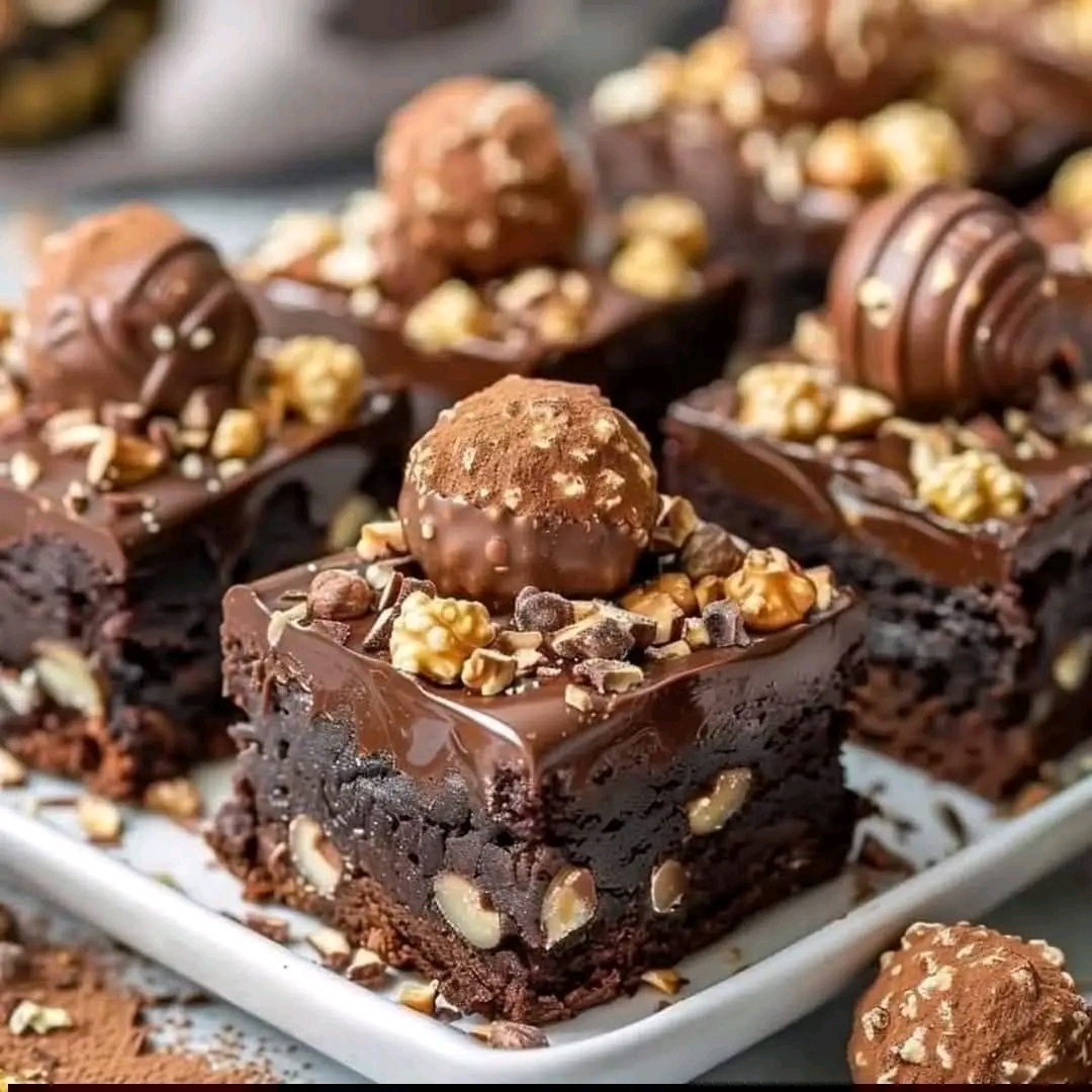 Keywords: Ferrero Rocher brownies, fudge brownies recipe, luxury chocolate dessert.