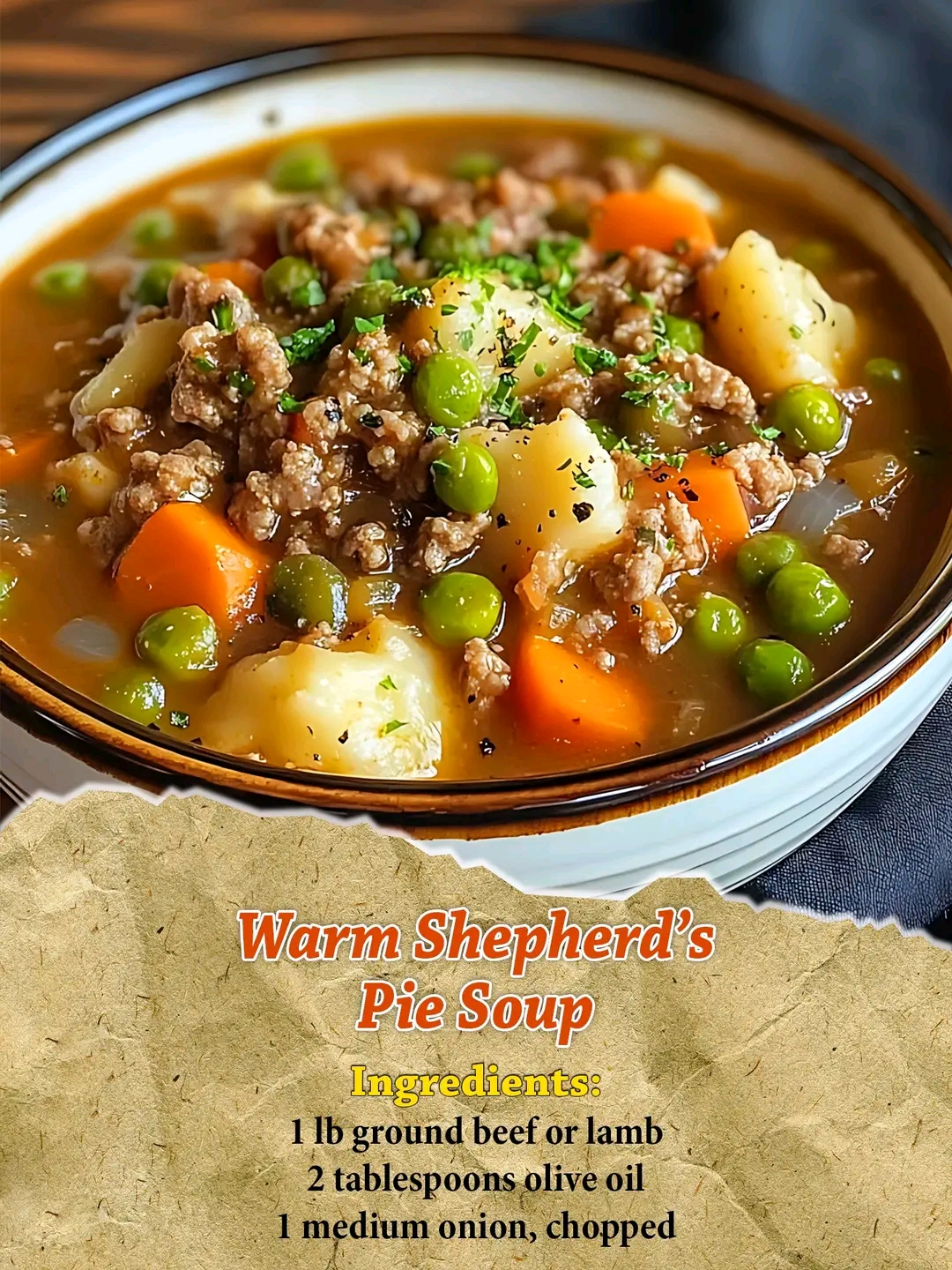 This Warm Shepherd’s Pie Soup takes all the cozy flavors of the classic casserole and transforms them into a hearty, comforting bowl. With savory ground beef or lamb, tender vegetables, creamy mashed potatoes, and sweet peas, it’s the perfect cold‑weather dish that feels like a hug in a bowl.